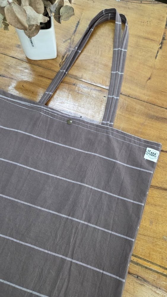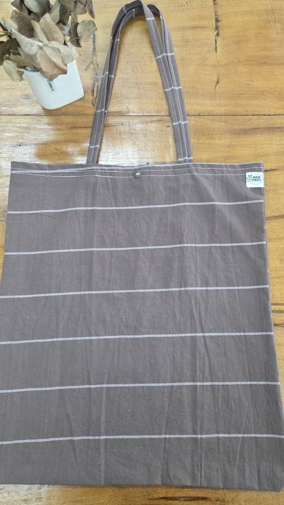 Bolso de tusor a rayas borravino, medidas 40 x 45.