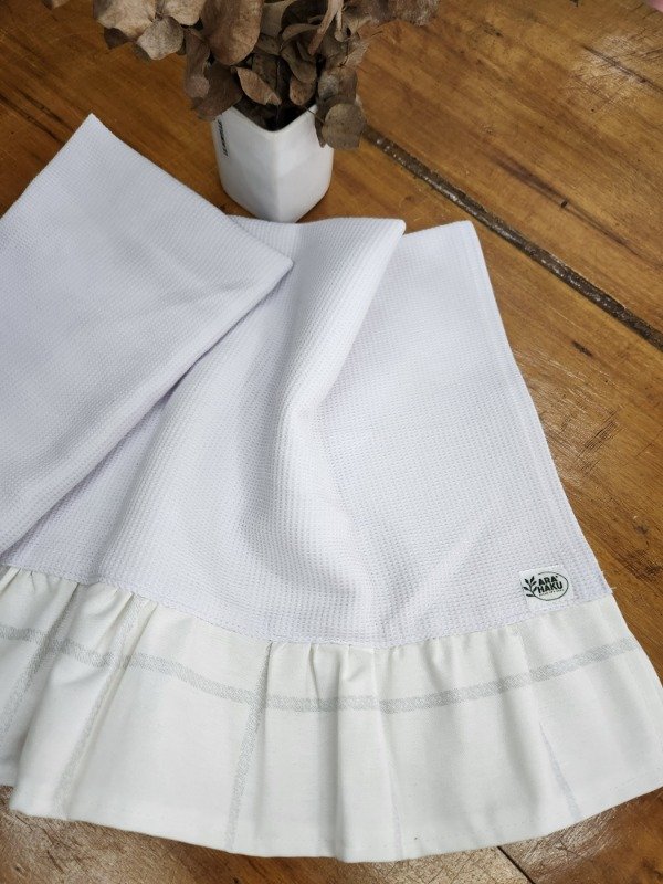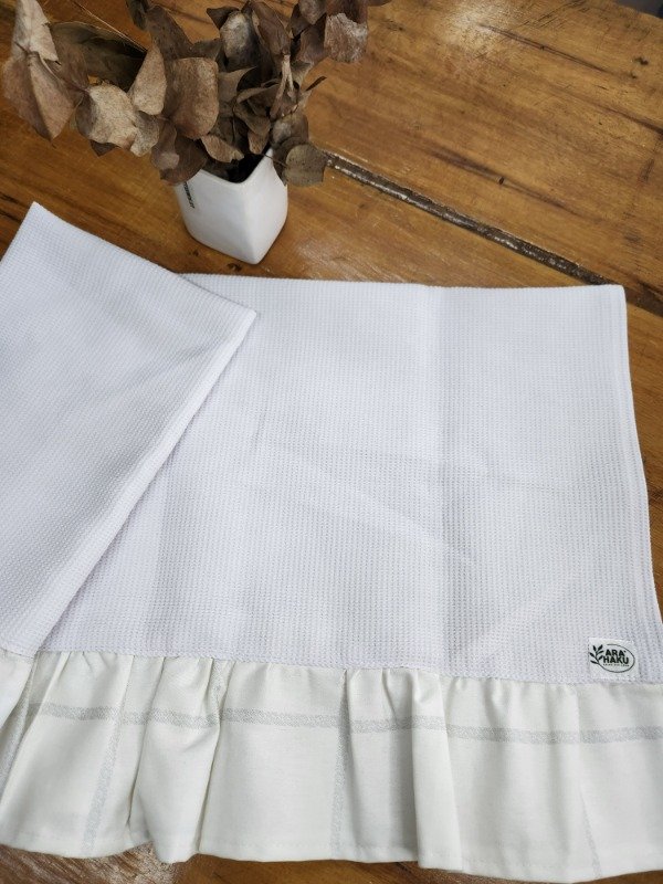 Repasador de tela nido blanco con volados. Medidas 45 x 75 aprox.