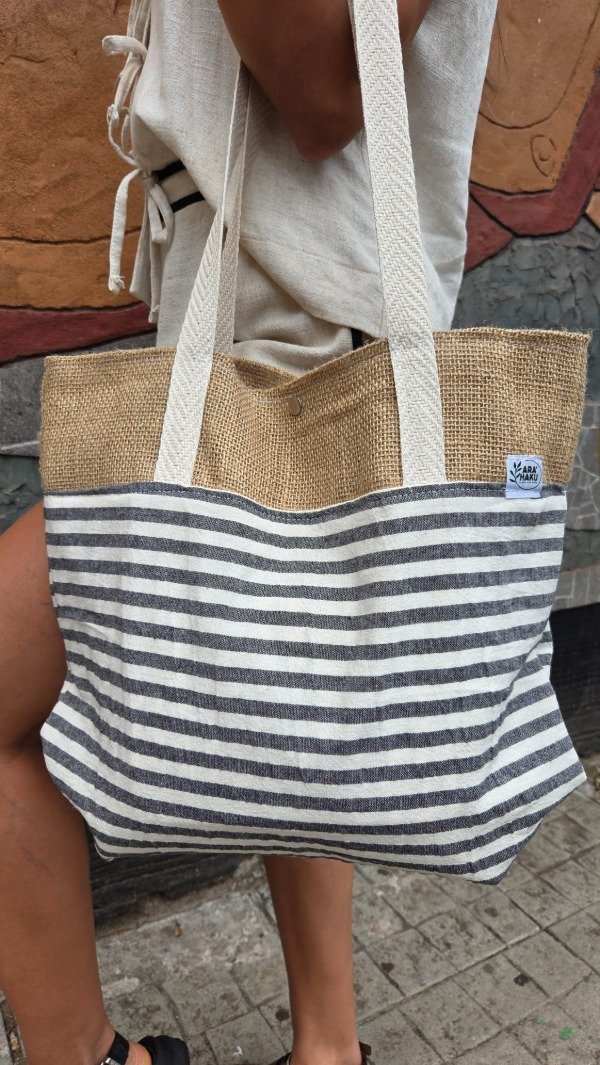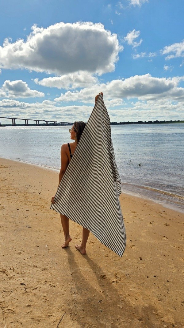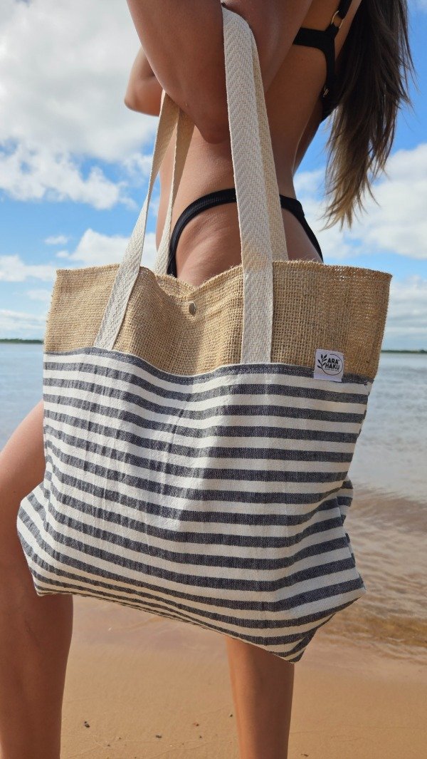 Set de playa/picnic estampado tusor rayas, incluye, bolso forrado con tela impermeable, estuche forrado, manta y almohadita con funda. Medidas manta 1 x 1.50 aprox.