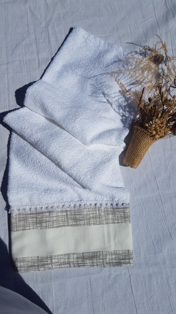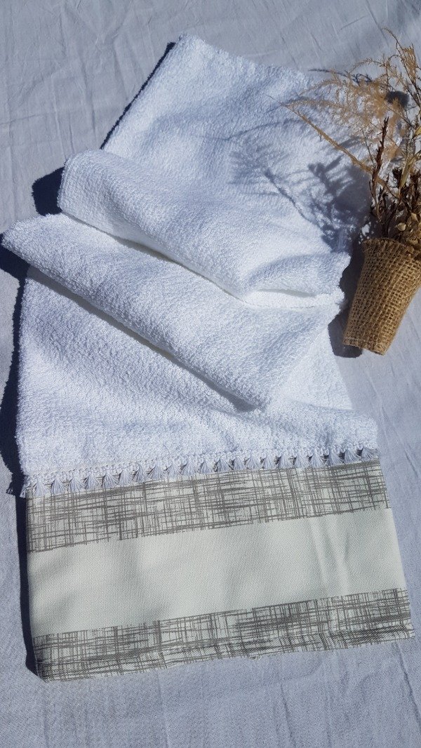 Toalla de algodón doble felpa calidad Premium detalles de gabardina estampada y puntillas de algodón. Medidas 50 x 80 aprox.